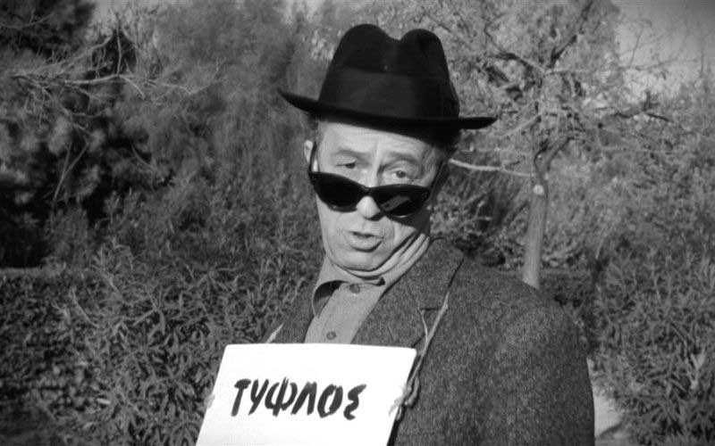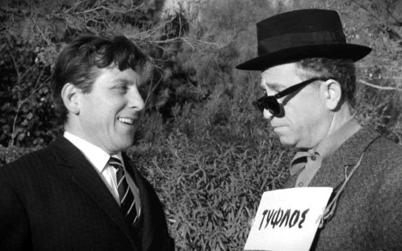 • Ουσιαστικά ο Μίμης Φωτόπουλος επεκτείνει εδώ τον ρόλο του ως “τυφλός” ζητιάνος από την Κάλπικη Λίρα.