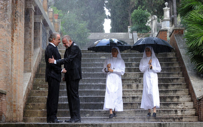 - Ο Francesco Rosi, διάσημος συνάδελφος και φίλος του Sorrentino, σκηνοθέτησε τη σκηνή στο Κονκλάβιο. Σε αυτήν, ο Sorrentino κάνει ένα πέρασμα.