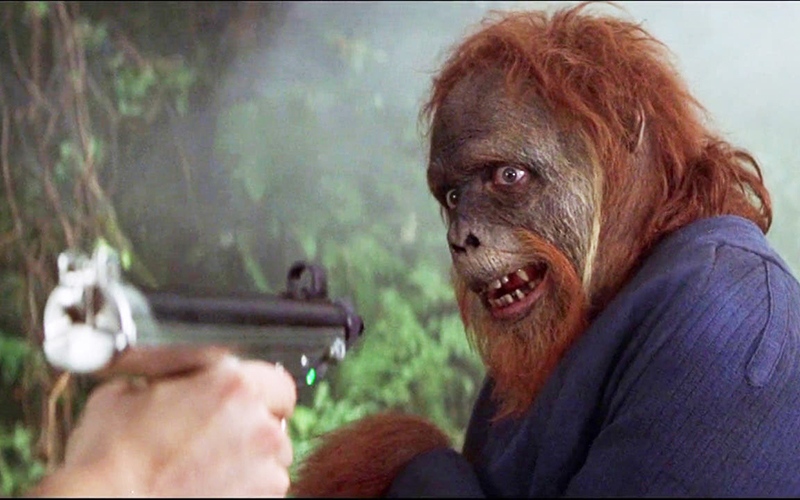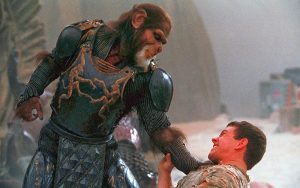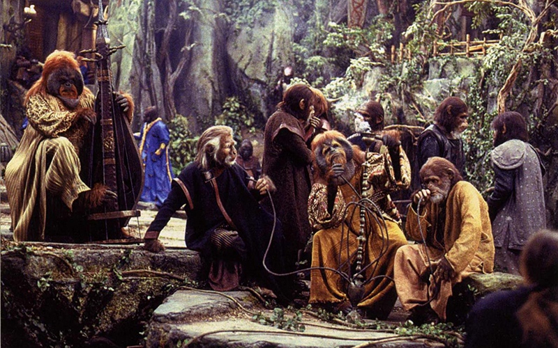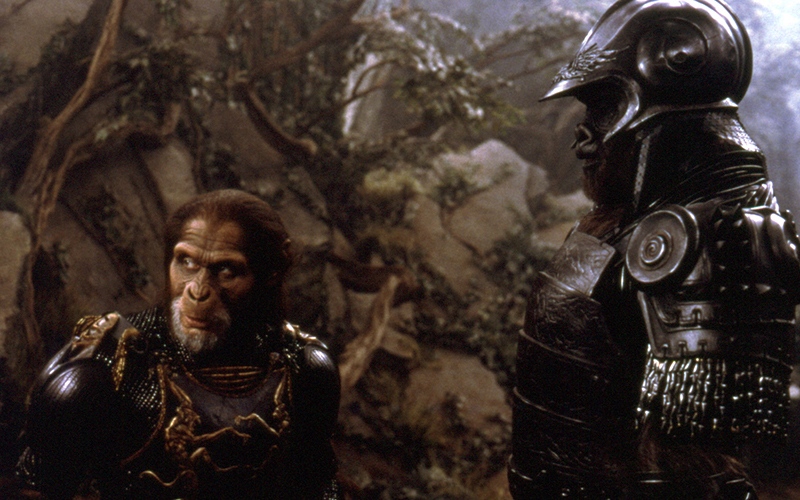Φυσικά για ερμηνείες ούτε λόγος (περίμενα καλύτερη τύχη για τον Mark Wahlberg, ενώ μάλλον ξεφτιλίζεται στη σύντομη παρουσία του ο Kris Kristofferson), και αυτό που ολότελα μένει είναι η δράση που κορυφώνεται στο τέλος όπου και έχουμε μια νέα εκδοχή, όχι και τόσο κακή, αλλά πάντα κατώτερη της προϋπάρχουσας. Στο μακιγιάζ, που είναι και η -ούτως ή άλλως- ατραξιόν της ταινίας (μαζί με το, ευτυχώς, λιτό ντεκόρ), υπεύθυνος είναι ο Rick Baker, το μεγαλύτερο όνομα του είδους στο Χόλιγουντ. Καλά που είναι κι αυτός, μια και όσο και να το ξεζουμίσετε, κι ακόμα κι αν ήταν ταμάμ το θέμα για αυτόν, Burton επί της ουσίας δεν θα βρείτε…
