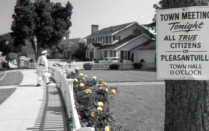Ο Ντέιβιντ είναι ένας συνεσταλμένος νεαρός, απογοητευμένος από τη ζωή του, που παρακολουθεί μανιωδώς το «Pleasantville», μια ασπρόμαυρη σαπουνόπερα της δεκαετίας του ’50, όπου εκεί όλα είναι… ευχάριστα. Μια μέρα, ένας καυγάς ανάμεσα στον Ντέιβιντ και την αδελφή του, Τζένιφερ, για ένα περίεργο ριμότ-κοντρόλ που μόλις απόκτησαν από έναν μυστηριώδη τεχνικό που τους επισκέφτηκε όταν χάλασε η τηλεόραση, καταλήγει στην διακτίνισή τους στην «Pleasantville»! Εκεί, ο Ντέιβιντ και η Τζένιφερ δεν είναι άλλοι από τους Μπαντ και Μέρι Σου Πάρκερ, δύο αδέλφια ντυμένα παλιομοδίτικα που ζουν στη χαρούμενη αλλά ασπρόμαυρη αυτή πόλη, μαζί με τους υπερβολικά ευχάριστους γονείς. Ο Ντέιβιντ, συνειδητοποιώντας το αδιέξοδο στο οποίο έχουν μπλέξει, αποφασίζει να κάνει κάτι για να επανέλθουν στην πραγματικότητα. Εντωμεταξύ, ένα κόκκινο τριαντάφυλλο φυτρώνει στην πόλη, και οι κανόνες αρχίζουν να καταρρέουν καθώς το χρώμα κάνει την εμφάνισή του στη ζωή των κατοίκων.