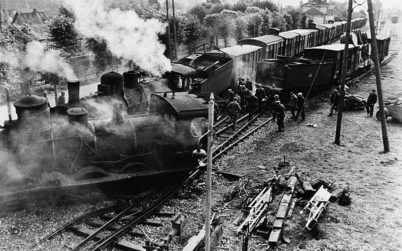 - Μια και οι γαλλικές αρχές ήθελαν να ξαναφτιάξουν τη συγκεκριμένη σιδηροδρομική γραμμή, οι εκρήξεις από τον βομβαρδισμό των συμμάχων στις ράγες έγιναν με αληθινό δυναμίτη.